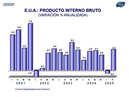 El Departamento de Comercio corrigió al alza su estimación preliminar de crecimiento del PIB para el segundo trimestre del año de un avance de 3.0% a uno de 3.3%, lo que también supera la estimación del mercado que preveía se mantuviera en el mismo nivel de 3.0%. A su interior, el crecimiento del gasto en consumo se corrigió al alza de 1.4% a 1.6%. La inversión privada se corrigió de una caída de 15.6% a una de 13.8%. Por su parte, el resultado de las exportaciones se corrigió de una disminución preliminar de 1.8% a una de 1.3%, mientras que en el caso de las importaciones la corrección fue de una baja de 30.3% a una de 29.8%. En el caso del gasto público hubo una corrección de un avance de 0.4% a una disminución de 0.2% disminuyó.