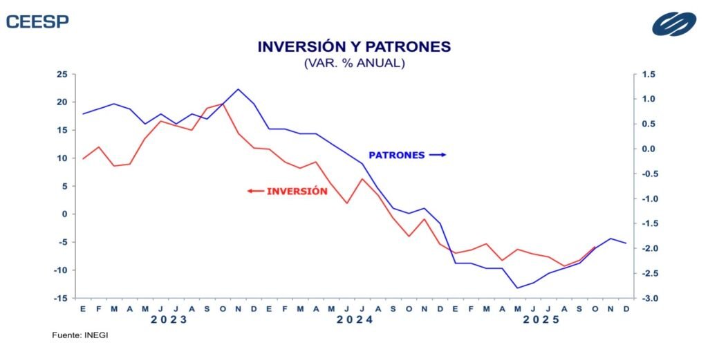 La caída de la inversión refleja en buena medida la decisión que toman los inversionistas en un ambiente de incertidumbre. En parte esto refleja la disminución del número de empresas formales que hay en el país. Los resultados del IMSS muestran que durante 2025 el número de patrones se redujo en 25,667, su mayor reducción históricamente. Pero no solo eso, en 2024 se perdieron otros 17,911, con lo que en estos dos años cerraron 43,578 patrones formales.