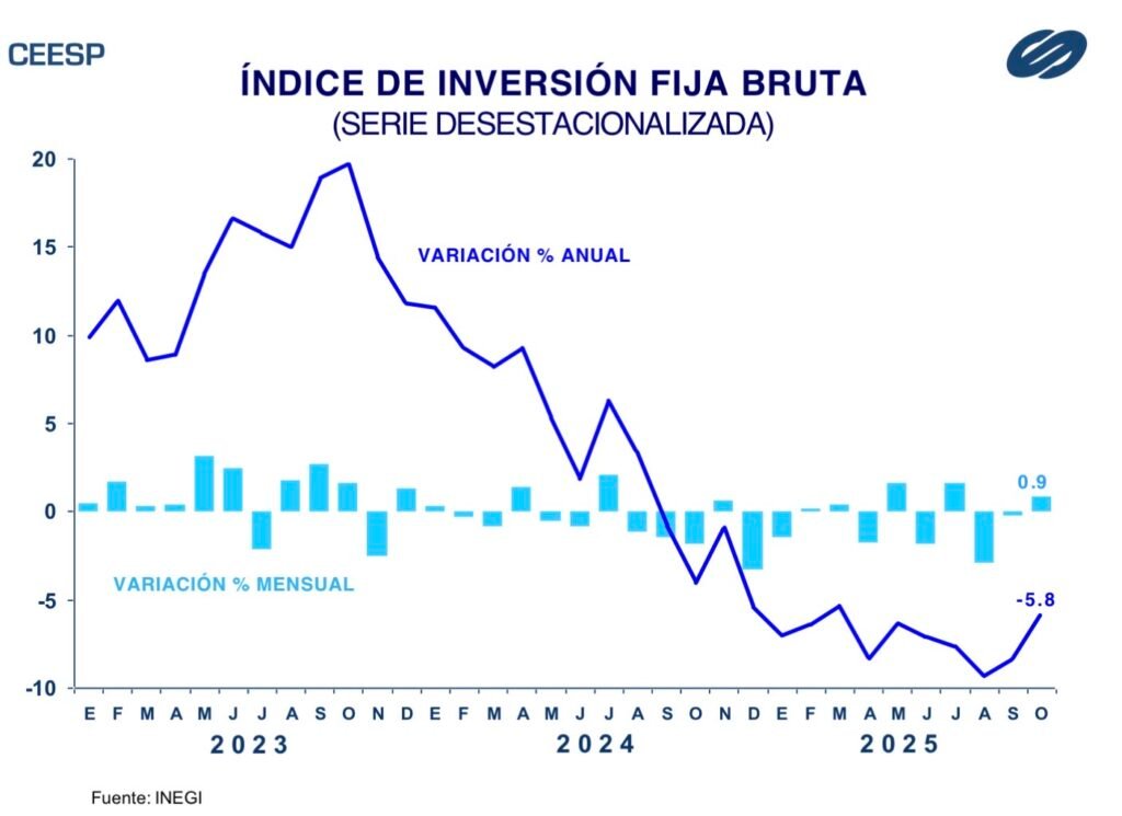 De acuerdo con la encuesta de los especialistas del sector privado que realiza el Banco de México, el pronóstico de crecimiento anual el PIB para el último trimestre del 2025 se ubica en 0.9%, que contrasta con la caída de 0.2% del lapso previo.