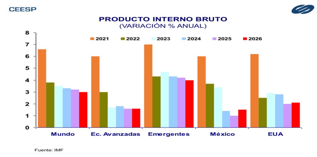 Aunque para 2026 el pronóstico de crecimiento de la economía mundial es de 3.1%, es el más bajo después del repunte postpandemia.