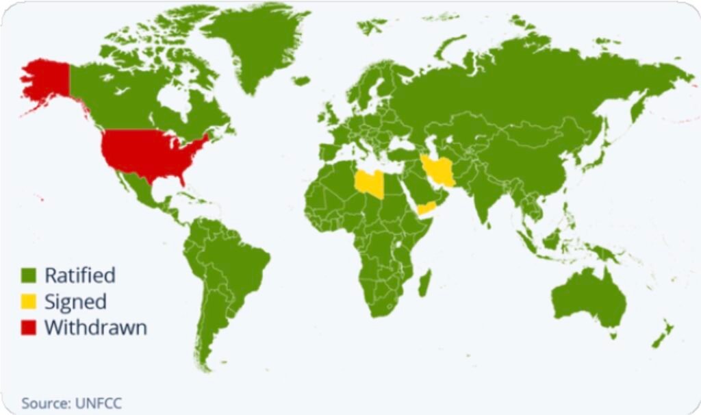 EE.UU. formalizó nuevamente su salida del Acuerdo de París, sumándose a Irán, Libia y Yemen como los únicos países actualmente fuera del tratado climático internacional. El acuerdo busca coordinar esfuerzos internacionales para limitar el aumento de la temperatura media del planeta a 1.5 °C, con compromisos voluntarios de reducción de emisiones.