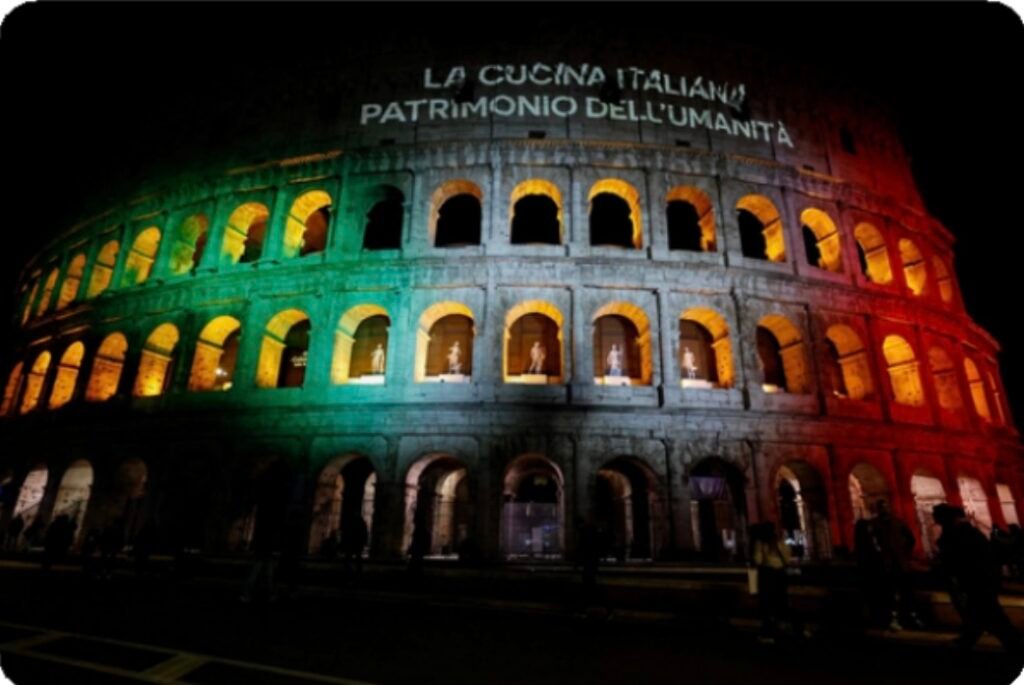 El Coliseo se iluminó en Roma, Italia para celebrar que la UNESCO declaró la cocina italiana Patrimonio Cultural Inmaterial de la Humanidad, el primer reconocimiento que abarca la gastronomía completa de un país. El organismo destacó su papel como identidad sociocultural y “cocina de los afectos”, así como su amplia diversidad regional.